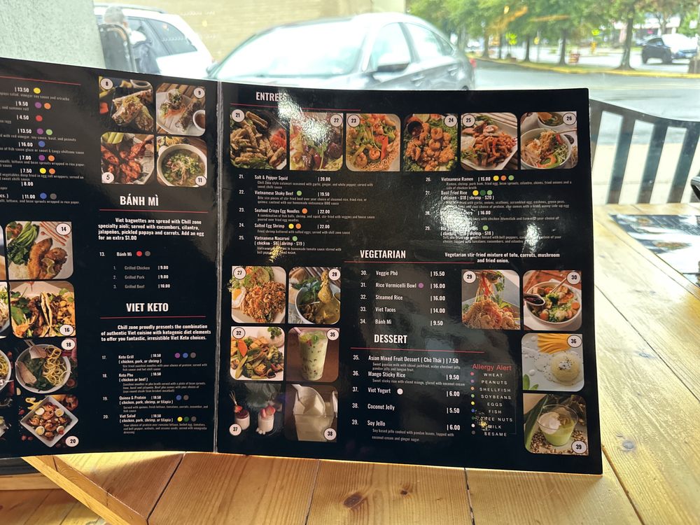 Located in Arlington, VA, Chill Zone is a trendy café offering a diverse menu of Vietnamese-inspired dishes and delicious drinks. With a cozy ambiance and quick service, customers rave about the flavorful pho, shrimp fried rice, and traditional Vietnamese hot coffee. The café's chill vibe, complete with kpop background music, makes it a perfect spot for comfort food and relaxation. From vegetarian pho to jasmine tea lattes, Chill Zone provides an extensive array of options for all taste preferences. Customers also praise the café for its friendly staff and creative atmosphere, making it an ideal place to visit with friends or to work remotely. Whether you're looking for a warm bowl of pho on a rainy day or a refreshing matcha with boba, Chill Zone has something for everyone in a welcoming and inclusive setting.